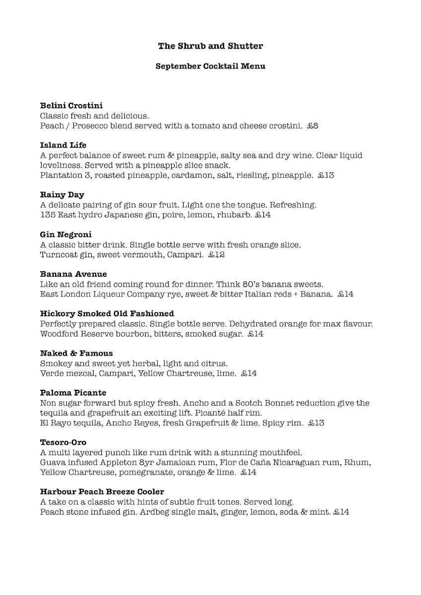 Welcome to The Shrub and Shutter, a hidden gem located at 336 Coldharbour Ln, London. This vibrant space offers a unique blend of expertly crafted cocktails and delectable small plates that are perfect for sharing. As you step inside, the welcoming atmosphere invites you to explore an impressive menu featuring highlights like Duck Fat Wash El Dorado and Groundhog Day, enticing drinks that will intrigue your palate.